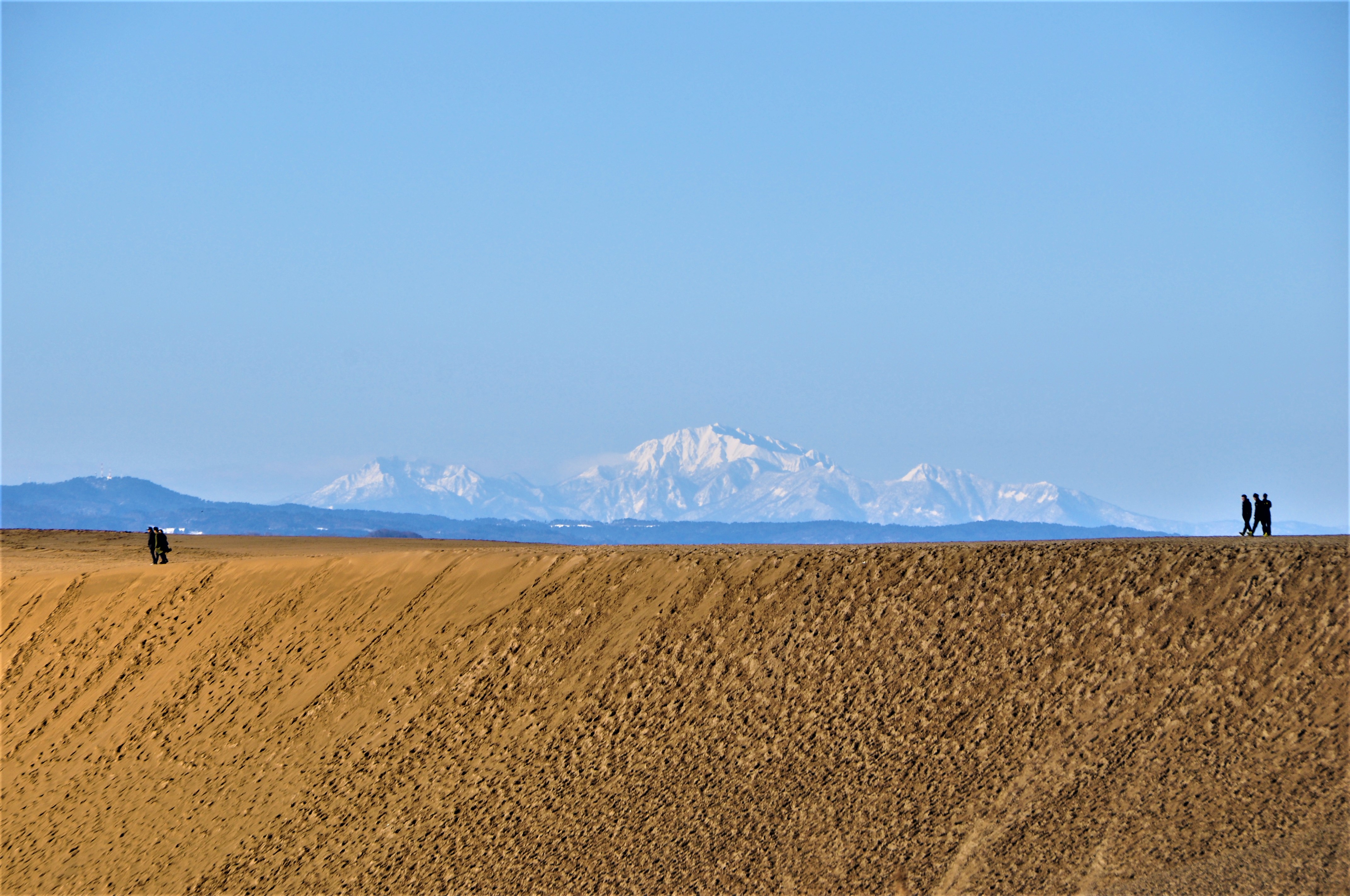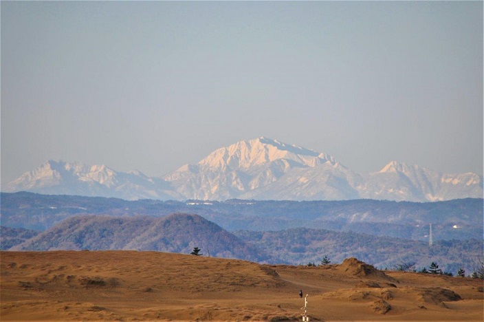 【鳥取砂丘から望む雪をかぶった大山】